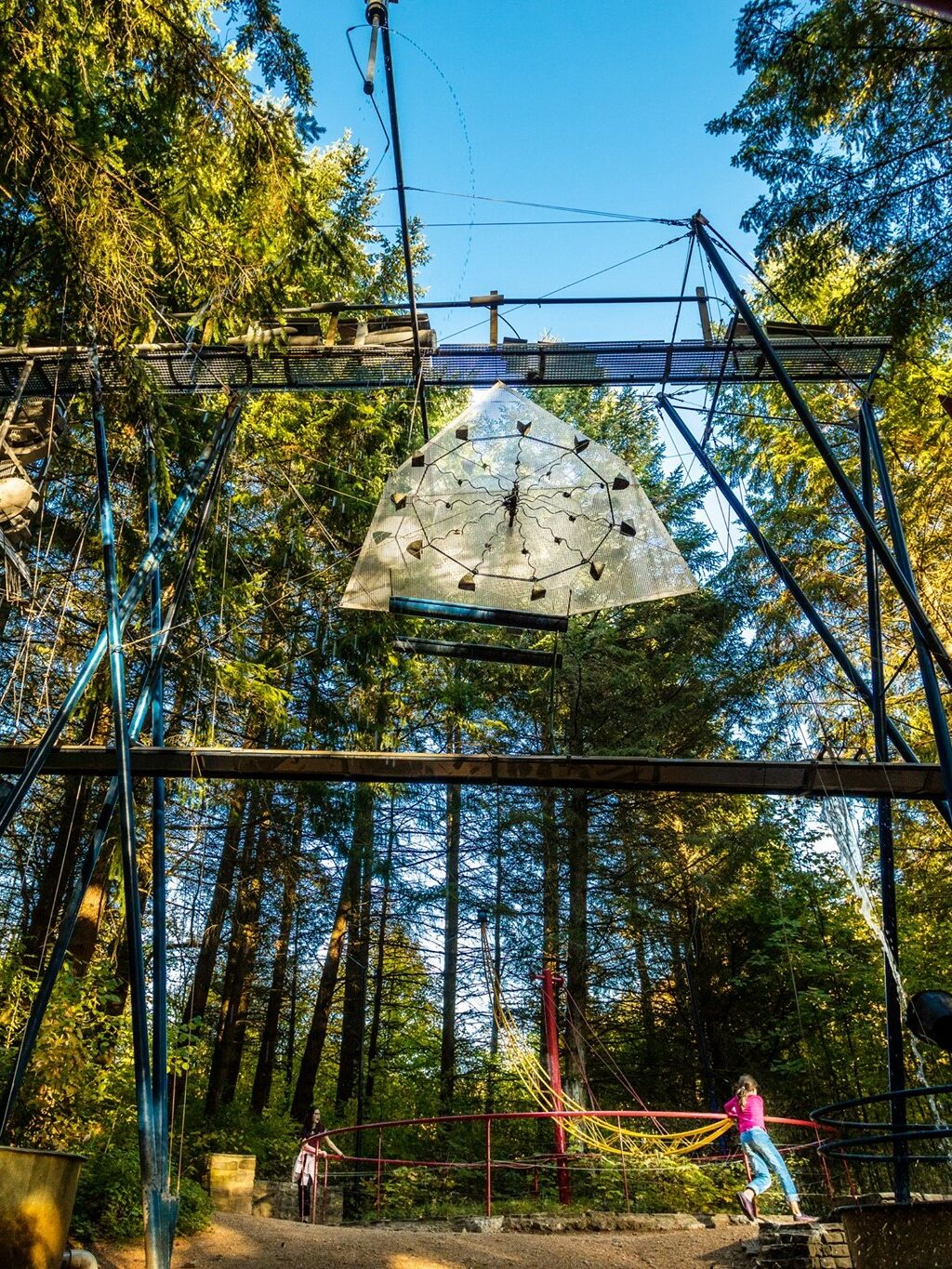 Plongez dans un vallon enchanteur, au beau milieu d’œuvres d’art contemporain. Faites de la corde à sauter avec un filet d’eau, perdez-vous dans un labyrinthe coloré, glissez dans un toboggan sur les pentes de la forêt, faites de la musique avec des billes, élevez-vous dans les arbres de filets en filets… Entre surprises et éclats de rires, émerveillez-vous au cœur de ce lieu poétique et ludique !